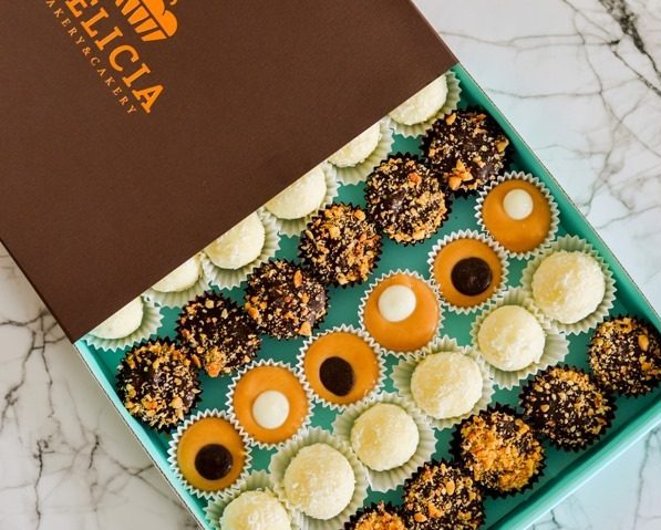 Декоративна кутија со микс со три видови на колачиња: рафаело, тоблероне, карамела